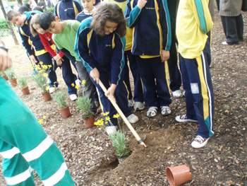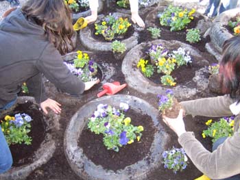 Al mes de desembre, un cop col·locada la placa al centre, ens vam reunir tots al pati i vam repartir a cada família de l’escola una planta, un pensament, perquè en tinguessin cura durant tot l’hivern. A finals de febrer es va demanar a l’alumnat que tornessin les plantes. Vam quedar sorpresos de la gran quantitat de plantes que van tornar a l’escola. Els i les alumnes de sisè van plantar-les en tres racons de l’escola i entre tots hem fet un calendari de rec on participen tots els cursos.
