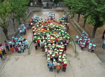 En un acte on va participar l’Ajuntament i el Departament de Medi Ambient i Habitatge, els alumnes del CEIP MD del Sòl del Pont, com a mostra de participació en el Programa, reben un distintiu per a cada classe i entre tots construeixen un arbre gegant al pati.