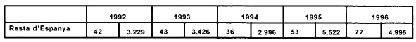 capacitat datracció. Això ha aconsellat al govern portuguès a repensar-se la seva posició davant el sector audiovisual i el passat desembre va publicar un nou decret sobre política audiovisual, argumentant que el fins aleshores vigent havia quedat ultrapassat. De moment, el decret no saplica fins resoldre una qüestió prèvia de competències. Si ampliem aquestes comparacions a la producció pròpia de la resta dEspanya, dacord amb el quadre que es reprodueix a continuació, les conclusions ens donaran nou tema de reflexió. A la resta dEspanya, per tant, en referència a la producció pròpia de lEstat descomptades les pel·lícules considerades industrialment catalanes, es recapten 20.168 milions de pessetes i es produeixen 251 pel·lícules, xifres que donen com a mitjana una recaptació de 80,4 milions de pessetes per pel·lícula.