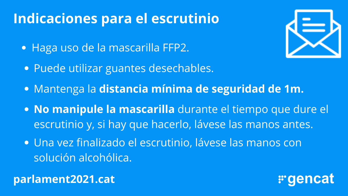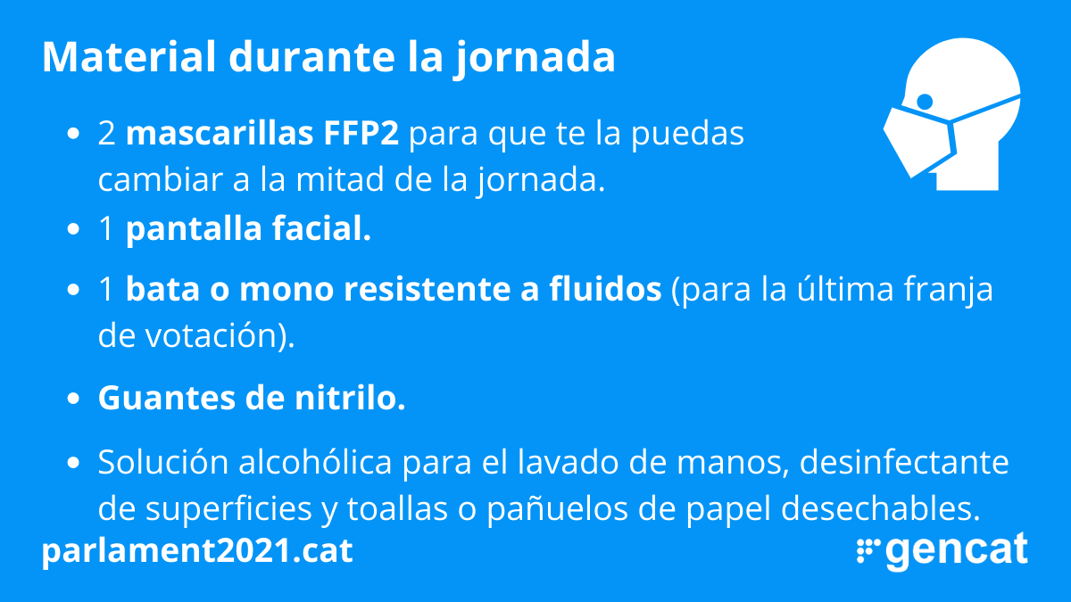 En caso de requerir asistencia sanitaria, el miembro de la Mesa Electoral deberá identificarse como tal en el centro sanitario al que acuda. También deberá comunicar a la Subdirección General de Procesos Electorales y Democracia Directa (eleccions@gencat.cat) lo antes posible, los siguientes datos: